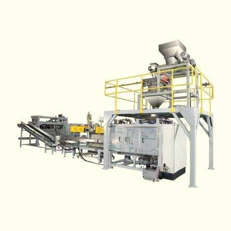 全自動(粉料)給袋包裝系統(tǒng)主要針對化工、食品等行業(yè)而研制的新型包裝機組。該機組具有自動供袋、上袋、稱量、填充、封口等功能。可包裝物料如顏料、面粉等粉狀、超細粉料。